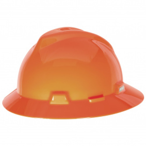 MSA #10021292 V-Gard Full-Brim Hard Hat w/Fas-Trac® III Suspension (Hi-Viz Orange)